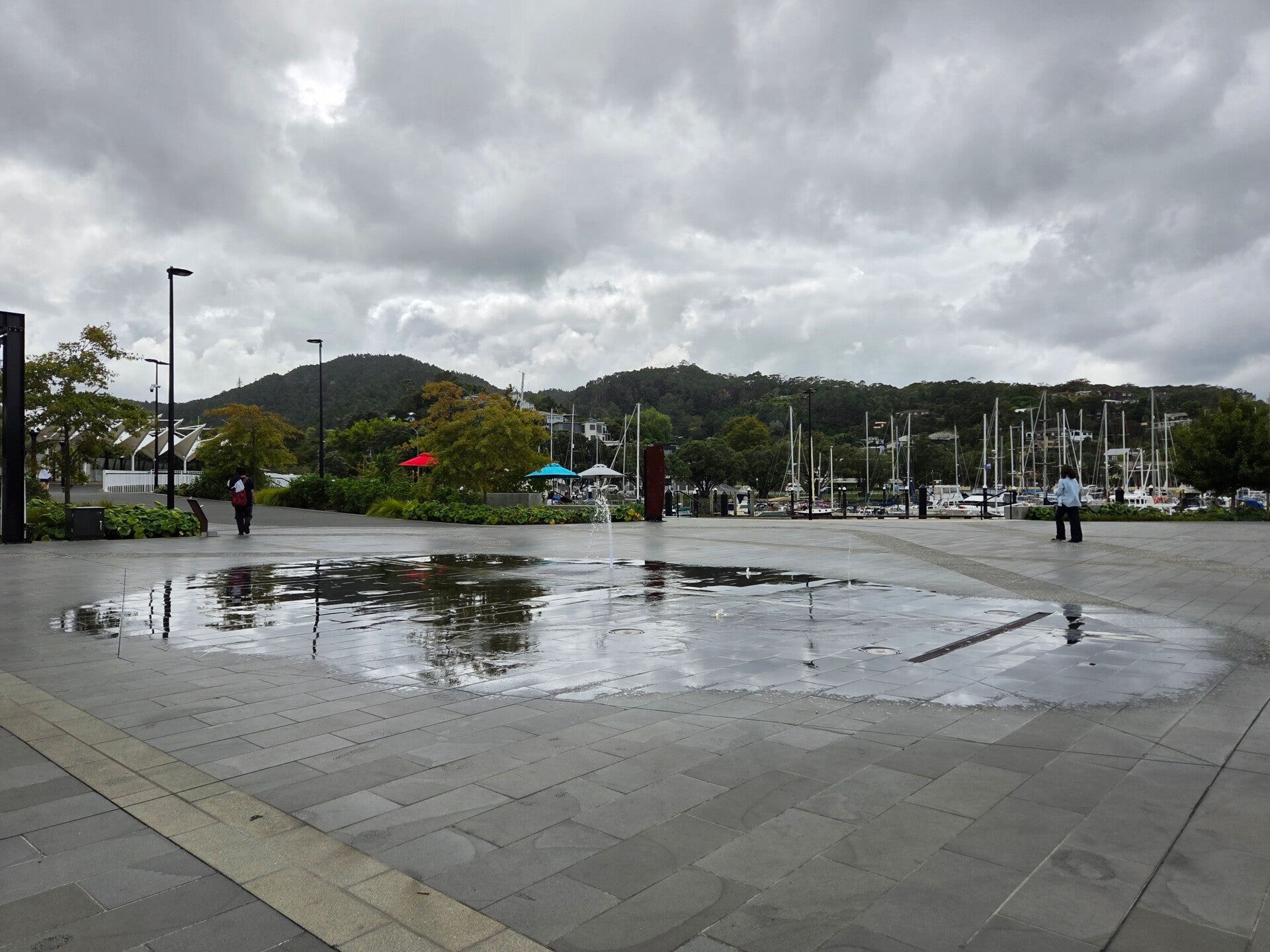 Wir haben gestern mit Rotlichttaschenlampe bewaffnet fast 2 Stunden auf der Lauer gelegen. Wir haben Kiwirufe und Rascheln gehört, aber keinen Kiwi. 😏 Dafür einen Igel. Immerhin! 😀 Wir fahren nach Russell hinein, das als ein Städtchen mit historischem Charme und viktorianischen Gebäuden beschrieben wird. Wir haben Mühe einen Parkplatz für unseren langen Camper zu finden, werden dann aber vor einem Geschäft fündig. Russell gefällt uns wirklich, nur schade, dass man die Gebäude gar nicht richtig sieht, da überall Autos davor parkiert sind. Wir schlendern durchs Dorf und schauen nochmals unsere weitere Route an. Da entdecke ich, dass eine Strasse, die wir fahren wollten als gesperrt angezeigt wird, aber eine Ausweichroute von 25km angegeben ist. Zu unserem Schrecken entdecken wir, dass es eine Gravelroad ist. Die ursprüngliche Strasse wurde im Januar ganz weggespült. 😯 Was nun? Da bleibt nur wieder der Weg über die Fähre zurück nach Opua und dann in den Süden. Soweit so gut. Jetzt ist aber Ebbe und wir können die Fähre ja erst etwa 1-2 Stunden vor der Flut befahren, damit wir nicht Aufschlagen. Also sitzen wir in Russell fest. 😅 Was macht man da? Nochmals das ganze Städtchen ablaufen, in alle Shops hineinschauen und Essen gehen. 😉 Inzwischen füllt sich das Städtchen mit immer mehr Touristen. Einige haben runde farbige Kleber auf den Shirt's. 🤔 Das sieht ganz nach Kreuzfahrtschifftouristen aus. Und tatsächlich sehen wir in der Bucht weiter draussen ein riesiges Kreuzfahrtschiff. Da wir das Städtchen schon 3x abgelaufen sind und es mit so vielen Touristen nicht mehr so gemütlich ist, fahren wir noch einige Kilometer auf der eigentlich geplanten Route bis zur Elliot Bay. Bereits auf dieser Strecke sieht man, was der Regen im Januar alles zum Rutschen gebracht hat. Am späten Nachmittag können wir dann wieder mit der Fähre übersetzen. Wir fahren südwärts bis Whangarai auf den Top10 Holiday Park. Vor uns tauchen dunkle Womken auf und wir sehen einen wunderschönen Regenvogen. Kurz darsuf beginnt es zu regnen und kaum sind wir auf dem Platz schüttet es wie aus Eimern. Und auch die ganze Nacht. 😏