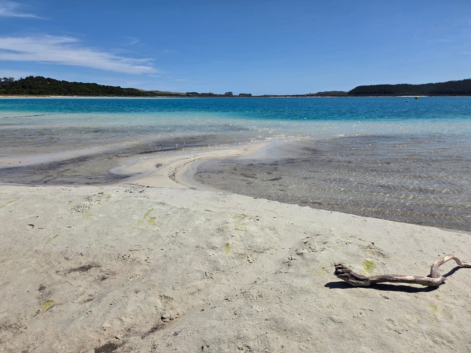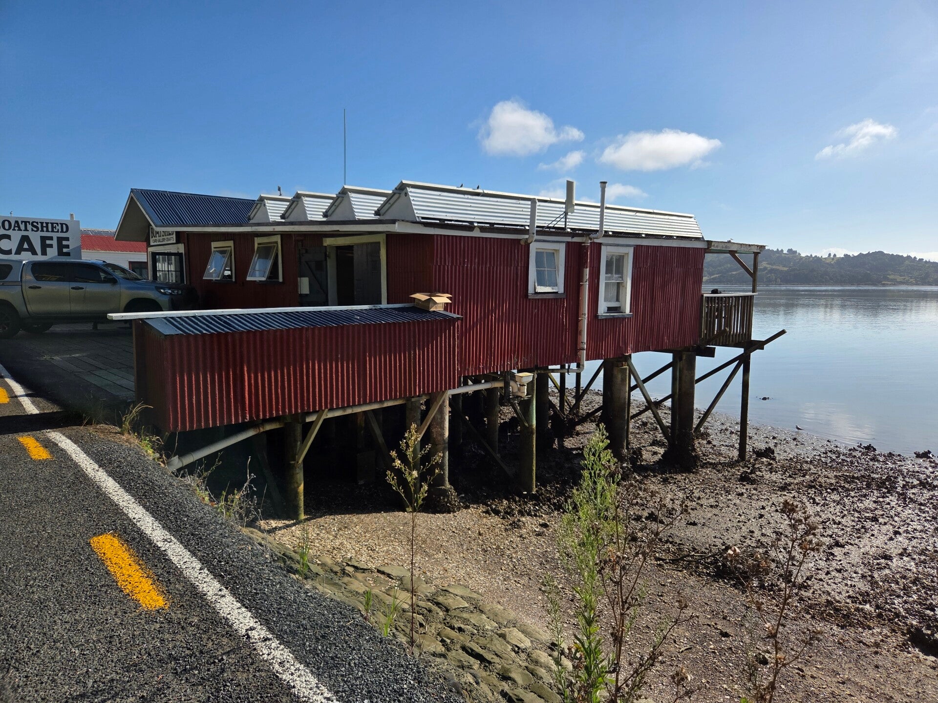 Unser nächster Stopp hilt den Kai Iwi Lakes, wo wir den grössten der Seen, den Lake Tahaora umrunden. In Omaperehaben wir eine schöne Sicht auf die Bucht. Da wir aber keinen Campingplatz reserviert haben und es hier in der Umgebung nur wenige gibt, fahren wir weiter mit Ziel Rawene. Plötzlich sehen wir am Strassenrand ein Schild zur Okopako Lodge auf dem auch ein Camper gezeichnet ist. Lodge tönt doch schon mal gut.😃 Also nichts wie umgedreht und angebogen. Gravel Road, die immer steiler und enger wird😅. Wo führt uns das noch hin? Hoffentlich nicht plötzlich an ein verschlossenes Tor ohne Wendemöglichkeit.🫣 Wenden können wor knapp, aber die Unterkunft stellt sich als Backpackerunzerkunft mit Parkplatz heraus, die eindeutig schon bessere Zeiten erlebt hat. Also nichts wie weg hier.😅 In Rawene ist die Zufahrt ähnlich, der Platz klein, aber sehr schön.😀