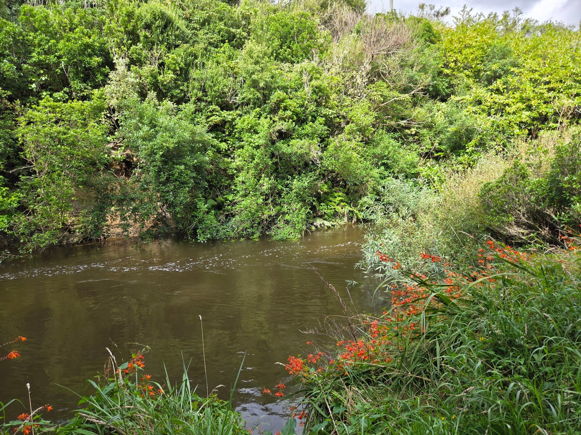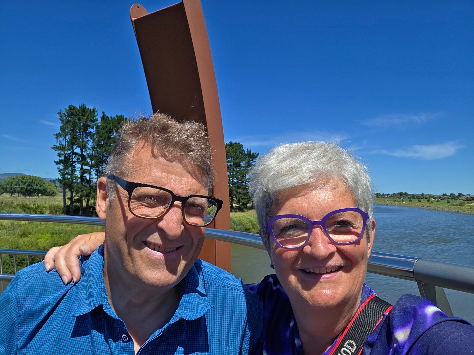 Und wieder geht es weiter. Schon von Weitem sehen wir auf einem Hügel viele Windräder am Horizont und sie kommen immer näher. Bei einer Baustelle, an der momentan niemand arbeitet, haben sie in der Mitte und an den Rändern der Strasse über eine lange Strecke Pylonen aufgestellt. Und zwar so eng, dass Kurt richtig zirkeln muss um keinen umzufahren. Und Kurt erhält 100 Punkte 😅, er hat keinen einzigen gestreift.😆 In der Ebene erreichen wir Palmerston North. Wir spazieren dem Manuwata River entlang. Der Weg ist für Spaziergänger und Fahrräder, also heisst es auf der richtigen Seite gehen. Kurt meint, wir müssen wohl links gehen, und wechselt auf die rechte Seite🤔. Gut passiert ihm das nicht beim Autofahren😅. Beim Camper zurück, will Kurt den Camper etwas zurücksetzen, damit wir nicht eingeparkt werden. Ich warte währenddessen vor einem Kaffee, indem wir etwas Essen möchten. Es dauert lange, bis er zurückkommt. Er sagt, dass ihm doch beim Öffnen des Dachfensters doch tatsächlich der ganze Rahmen auf den Kopf gefallen ist und er dann meine Hilfe braucht um ihn wieder zu montieren. Es ist aber nicht nur der Rahmen, sondern der Öffnungsgriff ist ausgehängt.🤔 Das schafft man ja nur, wenn man sich daranhängt🤭. Ja, das Dachfenster ist hoch oben und Kurt nocht allzu gross. Das erklärt wohl alles. Kurt schmunzelt nur. Gemeinsam hängen wir den Griff ein und montieren den Rahmen. Wir sind halt doch ein gutes Team.🤩 Weiter gehts nach Feilding, wo wir in einem Markt für alles ( und das meine ich auch so: von Küchenartikel über Papeteriesachen, Schrauben bis Süssigkeiten) endlich Ersatz für das entlaufene Rüstbrett finden.😅 In Mangaweka haben wir auf den Awastone&Mangaweka Camping Grounds eine Powered Site reserviert. Es sind 2 Campingplätze, die zusammengehören, einer mit sehr schönen Plätzen mit Sicht auf den Rangitikei River und der andere, ein einfacherer und günstigerer. Wir haben für einmal den schönsten Platz erhalten und geniessen die einmalige Lage.