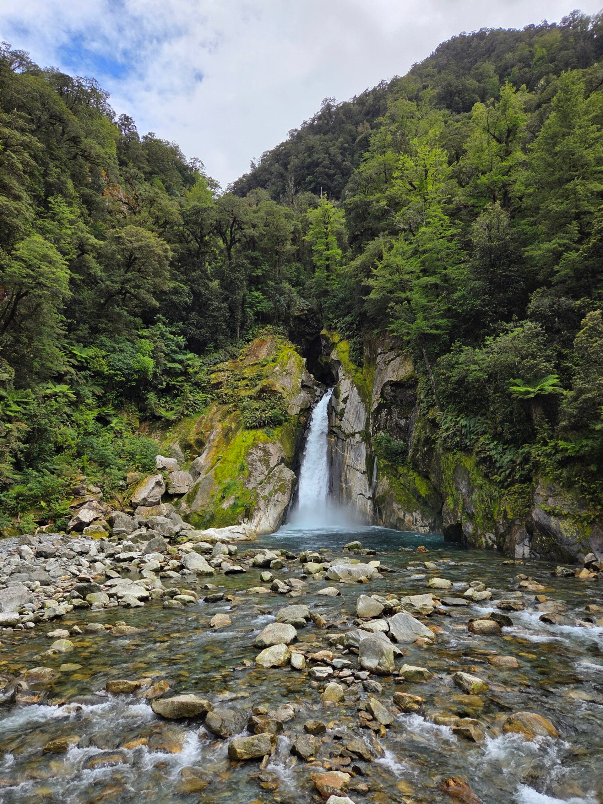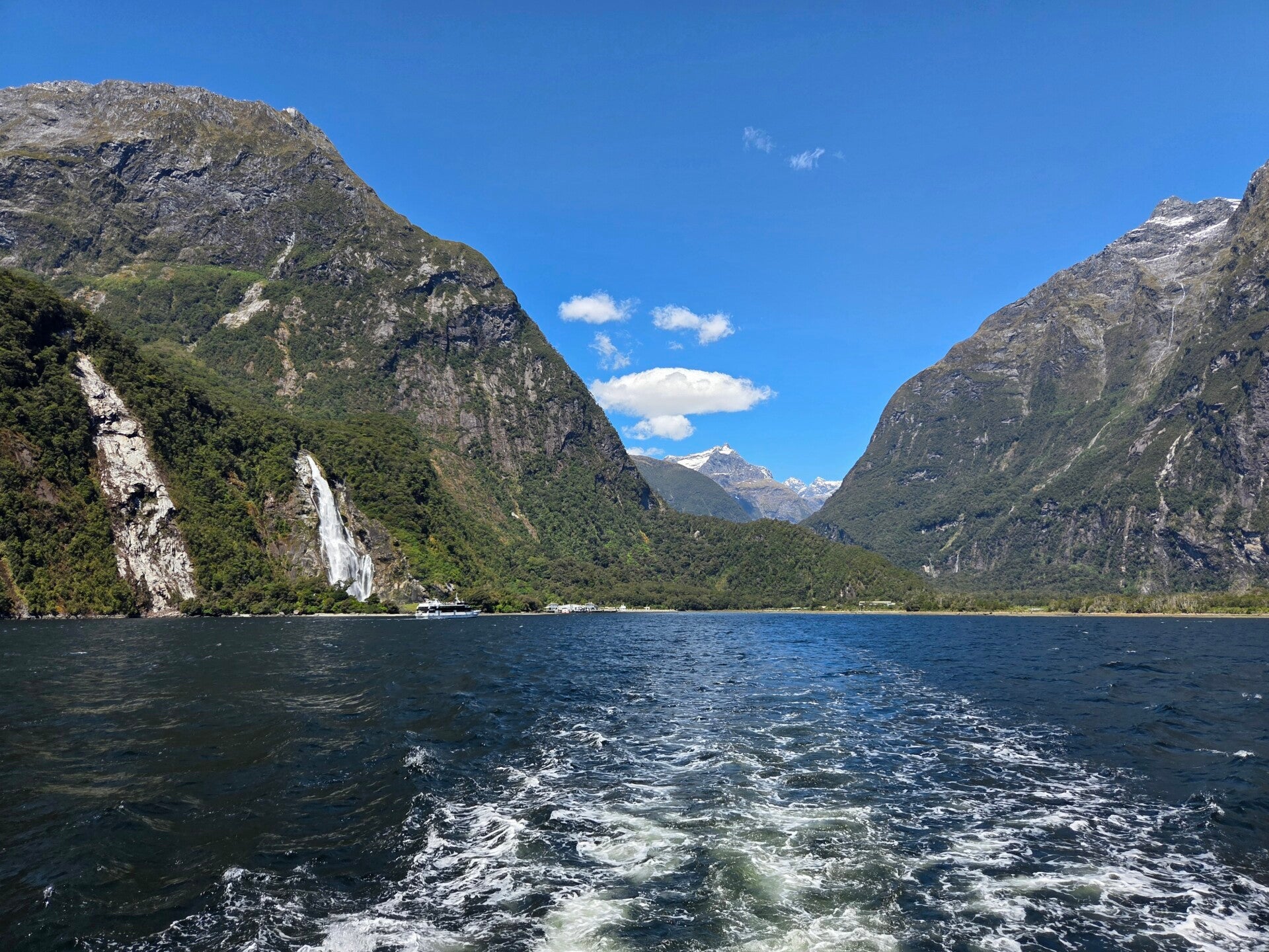 Am 3. Tag im Milford sound haben wir uns den Milford sound Track vorgenommen. Der Track ist 55 km lang und man macht ihn in 3-4 Tagen von Te Anau zum Milford sound. Wir haben uns vorgenommen ihn in einem Tag zu machen, dafür nur den letzten Teil davon. 😉 Mit einem Jet Boot werden wir an das Ende des Tracks, für uns der Anfang, den Sandfly Point gefahren. Ich habe mich sorgfältig eingerieben, da der Sandfly Point anscheinend seinen Namen zu gutem Recht hat. Dort angekommen tummeln sich aber nur wenige davon, umso besser für mich.😅 Die Track führt durch einen schönen Wald, dem Fluss entlang, zum Lake Ada bis zu den Giant Gate Falls und einer Hängebrücke. 5,5km und dann wieder den gleichen Weg zurück. Unterwegs treffen wir einige Wanderer an, die den ganzen Track gemacht haben. So gibt es am Sandfly Point Anlegestelle des Jet Boots einen kleine Stau (und das nicht nur bei den Menschen 🦟🦟🦟🦟🦟🥵), mit einer Wartezeit von ca. einer halben Stunde. Aber ich habe es überlebt.😉 Auf der Rückfahrt vom Milford sound gegen Te Anau machen wir noch einen Stopp beim Chasm walk. Er führt durch einheimischen Regenwald, wo man den mächtigen Cleddau River bewundern könnte, der dramatische, skulpturartige Löcher und Wasserfälle in den Fels gegraben hat. Da aber 2020 ein starkes Unwetter den ganzen walk und auch 2 Brücken weggespült hat, sieht man heute leider fast nichts. Geplant wäre aber gewesen, dass 2024 wieder alles in Stand gesetzt worden wäre. Da hat aber wahrscheinlich das nötige Geld gefehlt. 🤔 Wir übernachten ins neue Jahr hinein nochmals auf dem schönen DOC Cascade Campground. Da wir ja der Schweiz 12 Stunden voraus sind, machen wir uns Gedanken, was das wohl auf unser Wohlbefinden ausmacht, wenn wir im 2025 12 h weniger haben, dafür das 2026 12 h länger wird. Da wir nichts riskieren wollen, gehen wir schon früher schlafen, da sowieso auf dem ganzen Campingplatz Totenstille herrscht und wollen dann am nächsten Tag am Mittag, gleichzeitig wie alle in der Schweiz aufs 2026 anstossen (halt ohne Alkohol, wegen der Tageszeit 😉).