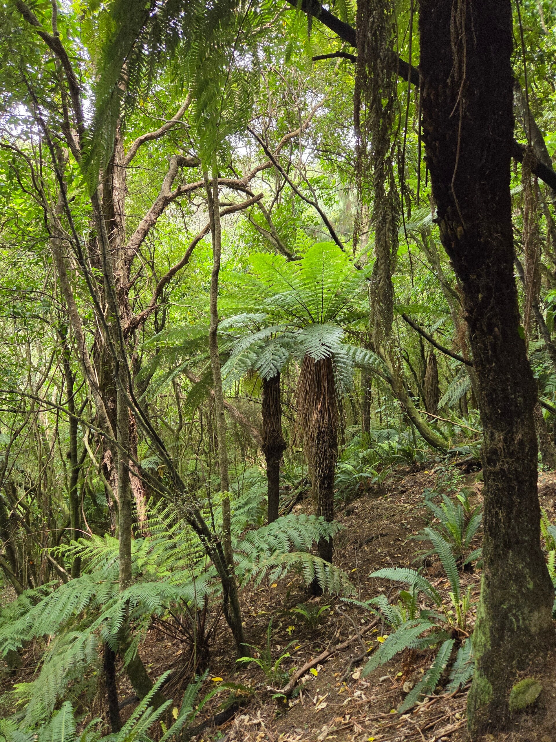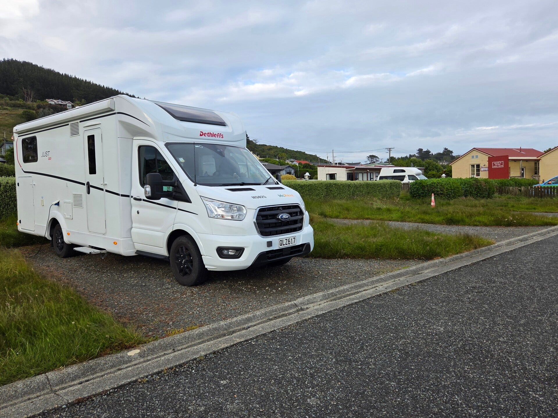 In der Nacht regnet es wieder. Nicht so stark, dafür tropfte es plötzlich ganz laut irgendwo an der Rückseite des Campers. Da ich nicht mehr schlafen kann, zählte ich die Abstände der Tropfen. Sie fallen regelmässig bei 7. Als der Regen etwas nachlässt, wächst der Abstand auf 10 an und ich freue mich schon, dass es nun bald aufhört. Doch plötzlich tropft es rasch nacheinander.😠 Wir beschliessen dem Tropfen am Morgen nachzugehen und schlafen dann trotzdem irgendwann ein. Am Morgen werden wir von einem alten Bekannten aus Australien, dem Flötenkrähenstar geweckt. Unsere einzigen Nachbarn räumen zusammen und wir sind nun alleine, nur von unbewohnten Wohnwagen umgeben und von einigen spielenden Hasen.😄 Gerüstet für eine Wanderung machen wir uns auf den Weg zum nahen Herbert Forest Reservat. Der Weg wird uns Richtung Fluss angezeigt, wo wir den Weg auf der anderen Seite sehen. Kurt schaut, wo wir wohl auf die andere Seite kommen. Er findet nur die Möglichkeit den Flusse zu durqueren. 🤔 Wir ziehen den Umweg über die Strasse mit einer Brücke vor.😅 Von weitem sehen wir den Campingplatz. (Siehe Foto) Unser Camper ganz links und alle anderen Wohnwagen sind unbewohnt.🙂Der Swallows track ist ein schöner Rundweg, zuerst steil hinauf durch einen Kiefernwald. Am Wegrand hat es immer wieder Fallen aufgestellt, die Opossums, Wiesel und Ratten ködern sollen. Kurt schleicht sich vorsichtig an. 😉 Nichts drin😅. Oben angelangt wandern wir noch Richtung eines Wasserfalles, drehen aber um als es immer sumpfiger wird. Im Wald umfliegen uns immer wieder neugierig ein Neuseeland-Fächerschwanz. Runter geht es wieder steil, diesmal aber durch ein urwaldähnliches Gebiet mit alten Maorihöhlen. Auf dem Campingplatz gibts zur Belohnung für die Wanderung ein Apéro und danach ein feines Znacht vom Grillchef Kurt.😘 Morgen gehts weiter Richtung Süden.😊