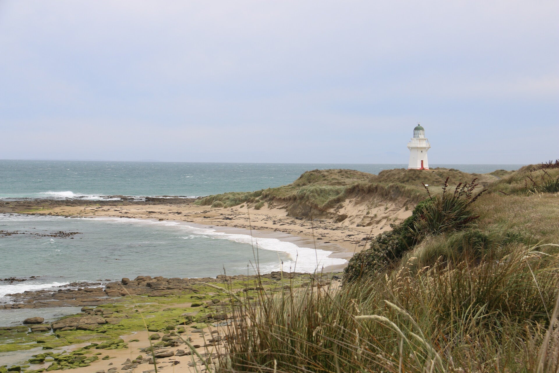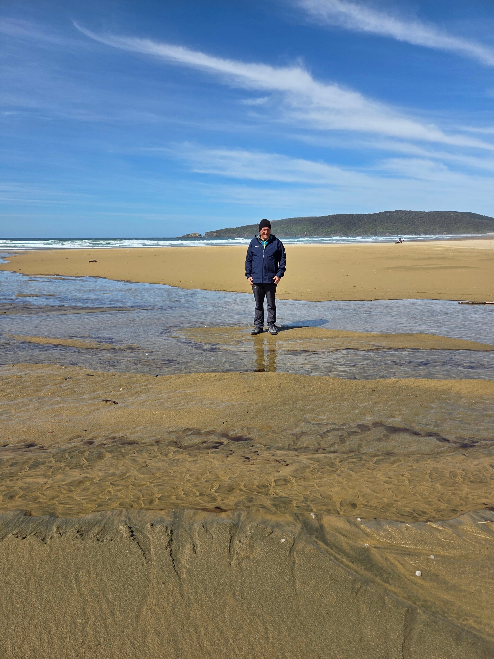 Heute geht es wieder ein Stück weiter in den Süden. Dem Meer entlang führt eine schöne Strasse zum Nugget Point Lighthouse. An der Strasse stehen Warnschilder mit Achtung sea lions und gleich darauf sehen wir am Strand einen Seelöwen. Der Nugget Point Leuchtturm ist ein historischer Leuchtturm, der bereits 1870 erbaut wurde. Die Gegend ist sehr grün, kein Wunder, da es auch sehr oft heftig regnet. In Owaka einem kleinen Dorf mit 350 Einwohner hat es mindestens 5 Kaffees. In einem davon geniessen wir unseren Morgenkaffee. Es hat sogar eine Stube mit einem lustigen Schachbrett. Weiter geht's über eine scienic Route durch wunderschöne Landschaften. Sonnenscchein und starker Regen wechseln immer wieder ab. Wir haben aber Glück, dass immer wenn wir etwas entdecken gehen die Sonne scheint und kaum sind wir zurück beim Camper beginnt es zu regnen. 😅 Unser erster Halt ist der Purakaunui Wasserfall, der in 3 Stufen herunterfällt. Auf dem Weg dorthin hören wir einen Vogel, der wie eine Hupe tönt. Es ist der Tui. Leider hören wir ihn nur und sehen ihn nicht. Schade, es wäre ein schöner Vogel.😏 Weiter geht es zu den Matai Falls und den Horseshoe Falls, beide auch sehr schön. In der The lost gypsy gallery gibt es Kaffee und Muffins und lustige Kreationen zu bestaunen und auszuprobieren. Die Strecke führt uns in Küstennähe zum Skeleton point lookout mit Sicht auf die wunderschöne Tautuku Bay. Es windet wieder recht stark und die Temperatur liegt immer nur zwischen 7 und 10 Grad. Nun führt uns die Strecke durch Hügel bis an die Curio Bay, wo wir 2 Nächte gebucht haben. Auf der Webseite des Campingplatzes steht, dass man sich bewusst sein muss, dass es hier meistens sehr stark windet. Als wir ankommen hält es sich noch in Grenzen. Wir machen noch einen kurzen Spaziergang ans Meer und einen Rundweg im Wald, wo wir einen Vogel sehen, der lustige Töne von sich gibt. Ich werde noch versuchen herauszufinden, wie er heisst. 😅