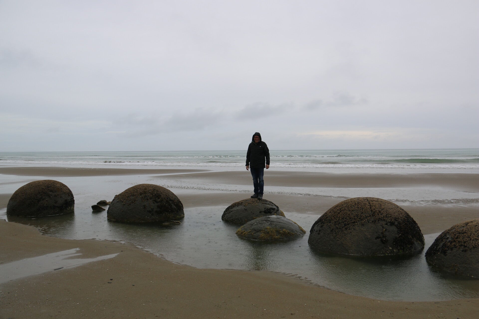 Gestern haben wir herausgefunden, woher die Tropfen kommen, die uns in der Nacht wachgehalten haben und dass sie auf die Stossstange tropfen. Gut, dass ich meinen durchlöcherten Socken noch nicht weggeworfen habe. 😅 So können wir ihn auf die Stossstange klemmen und die Nacht war tatsächlich ruhig. 🙂 Heute haben wir eine grössere Strecke vor uns. Unser Ziel ist der Kaka Point Campground. Wir machen bei Moreaki Halt um die Boulders zu besichtigen. Die Boulders sind natürliche geologische Gebilde – massive, kugelförmige Calcit-Konkretionen, die sich über Millionen von Jahren im Meeresschlamm bildeten und heute durch Küstenerosion freigelegt werden. Die Boulders entstanden durch die Zementierung von Sedimenten (Schlamm, Ton) durch Calcit, oft um einen organischen Kern (wie ein Fossil), der dann zerfiel, was zu den hohlen Strukturen führte. Die großen Felsen formten sich vor etwa 4 bis 5,5 Millionen Jahren. Die Māori erzählen, dass die Boulders die gestrandeten Vorratskörbe (Aalkörbe, Kürbisse) des großen Kanus "Arai-te-uru" sind, das vor langer Zeit vor der Küste sank. Im Kaffee treffen wir auf Kiwi, der uns ab sofort auf unserer Reise begleitet und gerne in der Mitte bei der Frontscheibe sitzt, damit er nichts verpasst. Weiter geht's zum Katiki Point Lighthouse und dem Fur seal viewpoint. Inzwischen regnet es wieder stark und der Wind lässt auch nichts zu wünschen übrig. Aber es gibt ja kein schlechtes Wetter, nur schlechte Kleidung. 🤣 Beim Fur seal lookout haben wir das Glück einen gefährdeten Gelbaugenpinguin zu sichten und viele Seebären (Ohrenrobben) von ganz nah.😁 Beim Shag Point steigen wir nur rasch aus, da der Wind so stark ist, dass es uns fast umweht. Der Coast Road entlang erreichen wir den Puketeraki Lookout mit einer schönen Aussicht auf die Gegend um Karitane. Immer wieder überquerfren wir die Bahnlinie, Züge sehen wir aber keine. 🤔 Zurück auf der Highway 1 hat es wieder viel mehr Verkehr. Da Kurt ja gerne zwischendurch etwas Abenteuer hat, navigiere ich ihn nach Dunedin über eine alternative Strecke durch die Wetlands des Lake Waihola (14km ungeteerte Strecke, mit steilen Stellen auf und ab 😅). Die Gegend ist wunderbar und wir beobachten einen Schafzüchter, der seine Schafe mit dem Traktor zusammentreibt. Weiter geht's über Milton und Balclutha mit einer schönen Brücke an den Kaka Point. Der Campingplatz ist noch recht leer und wir können einen Platz aussuchen. Eine Katze kommt mich sofort begrüssen. Da wir uns heute noch nicht so viel bewegt haben machen wir uns auf einen Bushrundwalk direkt beim Campingplatz. Sofort ist man in einem Dschungel. Als einziges Raubtier sehen wir aber nur die Katze, die uns den ganzen Weg begleitet.🙂 Da die Sonne wieder scheint, machen wir noch einen Abstecher ans Meer, wo wir in einem schönen Restaurant ein feines Znacht bekommen.