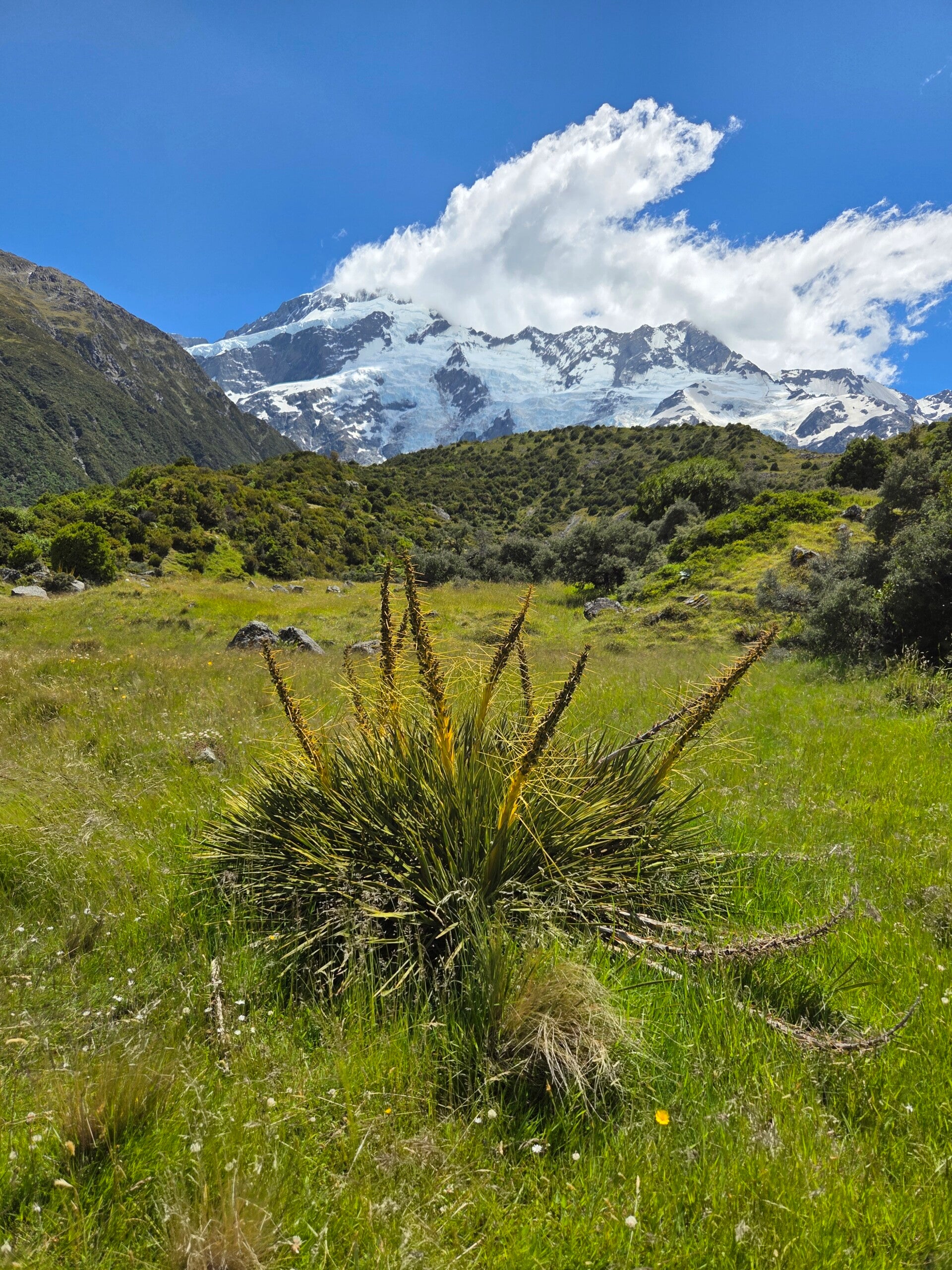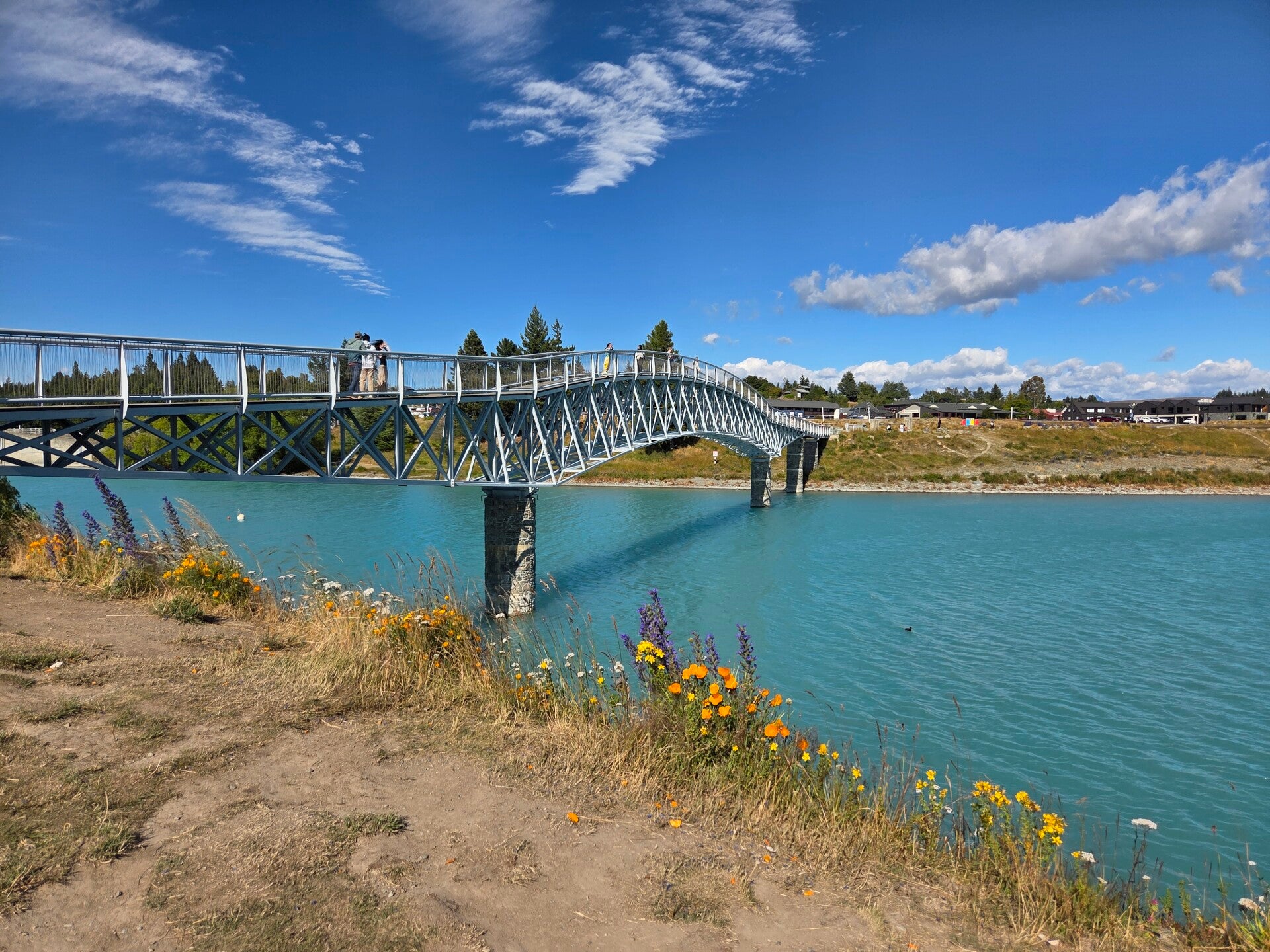 Nach einer etwas kürzeren Nacht, da wir als Nachbarn 2 asiatische Familien in 2 Campern hatten, die sich mit anderthalb Stunden Verspätung an die Nachtruheregel hielten, fahren wir noch zur Church of the Good Shephard fahren, die man auf vielen Fotos vom Lake Tekapo findet. Danach (aber erst nach einem Kaffee und einem Chai latte😉) fahren wir wieder die gleiche Strecke zurück bis zum Lake Pukaki, wo der Abzweiger zum Mount Cook kommt. Alles dem Lake Pukaki und dann dem Tasman River entlang bis zum DOC-Campingplatz White Horse Hill. Er liegt direkt unter einem Gletscher und ist der bis jetzt beste ausgerüstete DOC-Campingplatz. Wir und auch viele andere 😅, zum Teil auch in ganz speziellem Wanderoutfit😉, machen uns auf den Hooker valley track. Er ist aber nur bis etwas über die erste Hängebrücke offen, da die Strecke danach durch 2 starke Unwetter beschädigt ist. Auf dem Weg dorthin kommt uns plötzlich Johanna entgegen, welch ein Zufall😃. Die Hängebrücke kann von maximum 20 Personen gleichzeitig begangen werden und schwankt stark. 🫣 Hoffentlich können alle auf 20 zählen. 🤔 Die Brücke hält gottseidank und beim Camper zurück grilliert Kurt ein mehr oder weniger zähes Rindssteak (liegt aber nicht an Kurt sondern eher am Rind😉) und dazu gibts einen feinen Salat. Zwischendurch kommen immer stärkere Böen, die unseren Camper so richtig durchschütteln. Mal schauen, wie es sich so schlafen lässt.😴